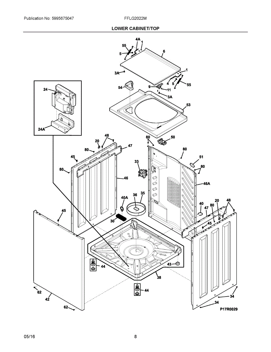 This genuine OEM part is a washer lid. The washer lid is the main piece that covers the washer. Over time, a washer lid can become damaged to the point where it no longer closes securely. If the washer lid is no longer closing all the way or is severely cracked or damaged, it will need to be replaced.To replace this part, start by making sure the washer is unplugged. After it has been powered off, proceed to take a putty knife to lift to release the two retaining clips that secure the washer's main top. Once released, proceed to remove the lid lock assembly wire connector. Fully remove the main top and set it upside down. Release the tension on the lid springs and detach the springs from the main top and hinge bars. Using a Phillips head screwdriver, remove the screws that secure the hinge bars to the lid. Push the hinge bars through the bearings then twist the bars to remove them. This will separate the lid from the main top. Take the new lid and align it with the main top. Insert the hinge bar between the main top and bearing while threading the screws to secure the new top. Reinstall the top panel and connect the wire harness. This replacement part is sourced directly from the manufacturer and is compatible with Frigidaire, Electrolux, Gibson, Kelvinator, and Westinghouse brand washers.
