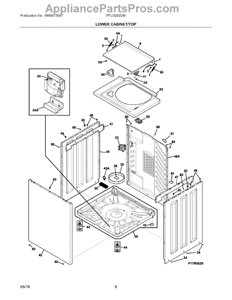 This genuine OEM part is a washer lid. The washer lid is the main piece that covers the washer. Over time, a washer lid can become damaged to the point where it no longer closes securely. If the washer lid is no longer closing all the way or is severely cracked or damaged, it will need to be replaced.To replace this part, start by making sure the washer is unplugged. After it has been powered off, proceed to take a putty knife to lift to release the two retaining clips that secure the washer's main top. Once released, proceed to remove the lid lock assembly wire connector. Fully remove the main top and set it upside down. Release the tension on the lid springs and detach the springs from the main top and hinge bars. Using a Phillips head screwdriver, remove the screws that secure the hinge bars to the lid. Push the hinge bars through the bearings then twist the bars to remove them. This will separate the lid from the main top. Take the new lid and align it with the main top. Insert the hinge bar between the main top and bearing while threading the screws to secure the new top. Reinstall the top panel and connect the wire harness. This replacement part is sourced directly from the manufacturer and is compatible with Frigidaire, Electrolux, Gibson, Kelvinator, and Westinghouse brand washers.