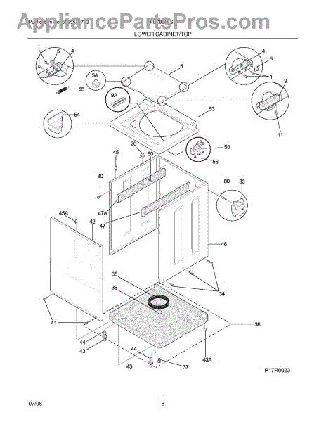 White cabinet assembly for laundry center units. Replace this outer frame if cracked, damaged, or worn. Includes full exterior housing structure.