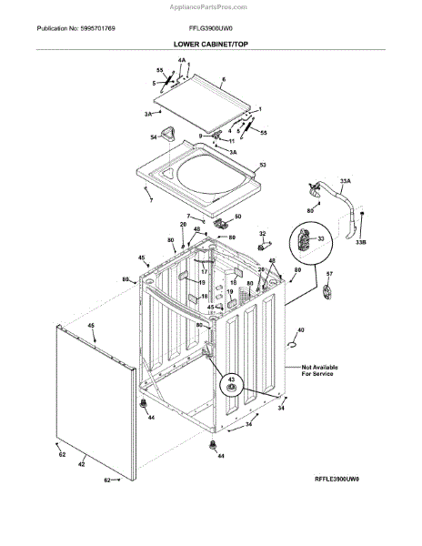 Protective component for laundry center units. Shields internal parts from damage during operation. Replace if cracked, broken, or missing to maintain unit.