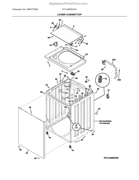 Protective component for laundry center units. Shields internal parts from damage during operation. Replace if cracked, broken, or missing to maintain unit.