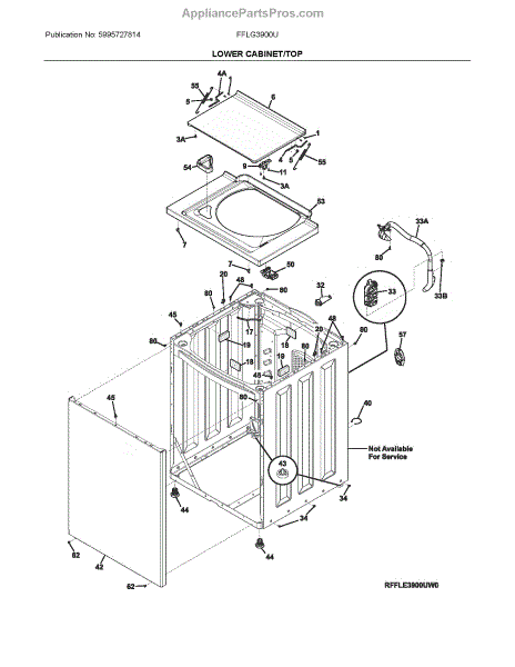 Protective component for laundry center units. Shields internal parts from damage during operation. Replace if cracked, broken, or missing to maintain unit.