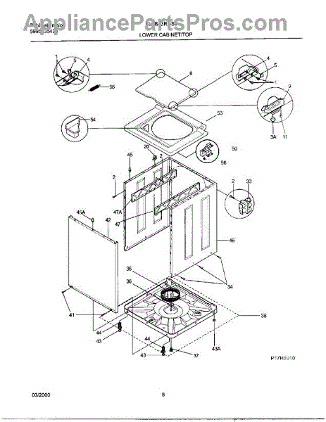 Parts for Frigidaire FLEB43RGS0: 08 - Lower Cabinet / Top Parts