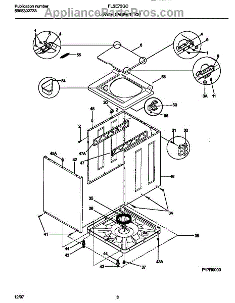 This genuine OEM part is a washer lid. The washer lid is the main piece that covers the washer. Over time, a washer lid can become damaged to the point where it no longer closes securely. If the washer lid is no longer closing all the way or is severely cracked or damaged, it will need to be replaced.To replace this part, start by making sure the washer is unplugged. After it has been powered off, proceed to take a putty knife to lift to release the two retaining clips that secure the washer's main top. Once released, proceed to remove the lid lock assembly wire connector. Fully remove the main top and set it upside down. Release the tension on the lid springs and detach the springs from the main top and hinge bars. Using a Phillips head screwdriver, remove the screws that secure the hinge bars to the lid. Push the hinge bars through the bearings then twist the bars to remove them. This will separate the lid from the main top. Take the new lid and align it with the main top. Insert the hinge bar between the main top and bearing while threading the screws to secure the new top. Reinstall the top panel and connect the wire harness. This replacement part is sourced directly from the manufacturer and is compatible with Frigidaire, Electrolux, Gibson, Kelvinator, and Westinghouse brand washers.