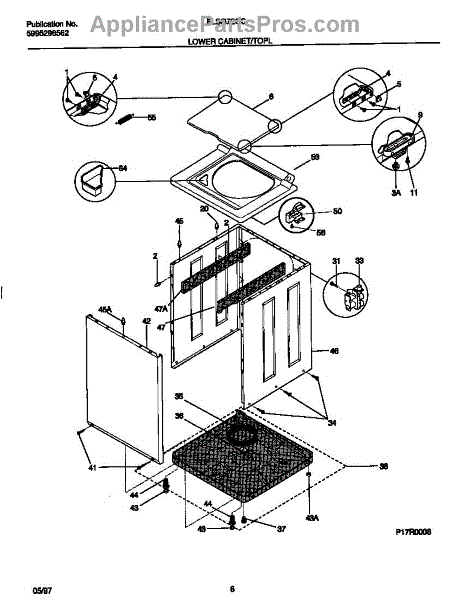 This genuine OEM part is a washer lid. The washer lid is the main piece that covers the washer. Over time, a washer lid can become damaged to the point where it no longer closes securely. If the washer lid is no longer closing all the way or is severely cracked or damaged, it will need to be replaced.To replace this part, start by making sure the washer is unplugged. After it has been powered off, proceed to take a putty knife to lift to release the two retaining clips that secure the washer's main top. Once released, proceed to remove the lid lock assembly wire connector. Fully remove the main top and set it upside down. Release the tension on the lid springs and detach the springs from the main top and hinge bars. Using a Phillips head screwdriver, remove the screws that secure the hinge bars to the lid. Push the hinge bars through the bearings then twist the bars to remove them. This will separate the lid from the main top. Take the new lid and align it with the main top. Insert the hinge bar between the main top and bearing while threading the screws to secure the new top. Reinstall the top panel and connect the wire harness. This replacement part is sourced directly from the manufacturer and is compatible with Frigidaire, Electrolux, Gibson, Kelvinator, and Westinghouse brand washers.