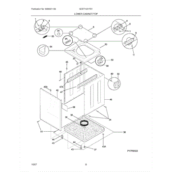 Top-loading washer lid for laundry center units. Replace if cracked, bent, or no longer closes securely. Installs with hinge screws at the rear.