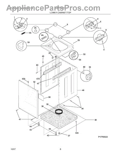 White cabinet assembly for laundry center units. Replace this outer frame if cracked, damaged, or worn. Includes full exterior housing structure.