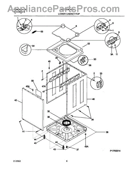 This genuine OEM part is a washer lid. The washer lid is the main piece that covers the washer. Over time, a washer lid can become damaged to the point where it no longer closes securely. If the washer lid is no longer closing all the way or is severely cracked or damaged, it will need to be replaced.To replace this part, start by making sure the washer is unplugged. After it has been powered off, proceed to take a putty knife to lift to release the two retaining clips that secure the washer's main top. Once released, proceed to remove the lid lock assembly wire connector. Fully remove the main top and set it upside down. Release the tension on the lid springs and detach the springs from the main top and hinge bars. Using a Phillips head screwdriver, remove the screws that secure the hinge bars to the lid. Push the hinge bars through the bearings then twist the bars to remove them. This will separate the lid from the main top. Take the new lid and align it with the main top. Insert the hinge bar between the main top and bearing while threading the screws to secure the new top. Reinstall the top panel and connect the wire harness. This replacement part is sourced directly from the manufacturer and is compatible with Frigidaire, Electrolux, Gibson, Kelvinator, and Westinghouse brand washers.