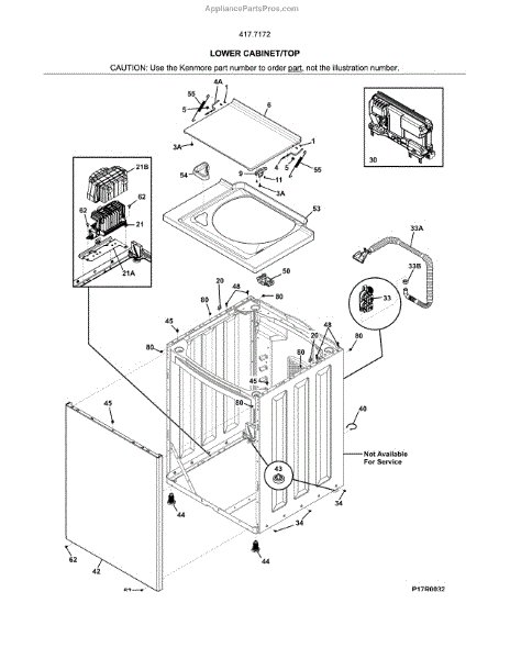 Parts for Kenmore 417.71723511 (41771723511, 417 71723511): Lower Cabinet / Top Parts