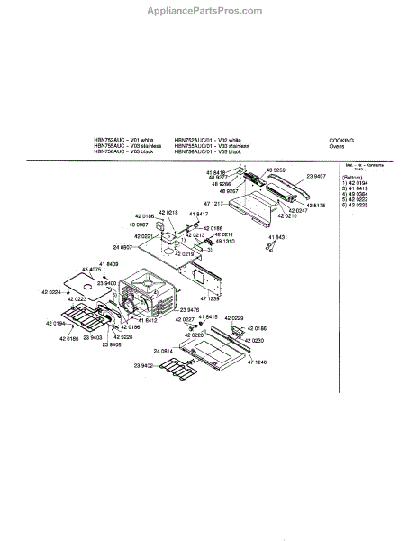 Parts for Bosch HBN752AUC: Lower Cavity Parts