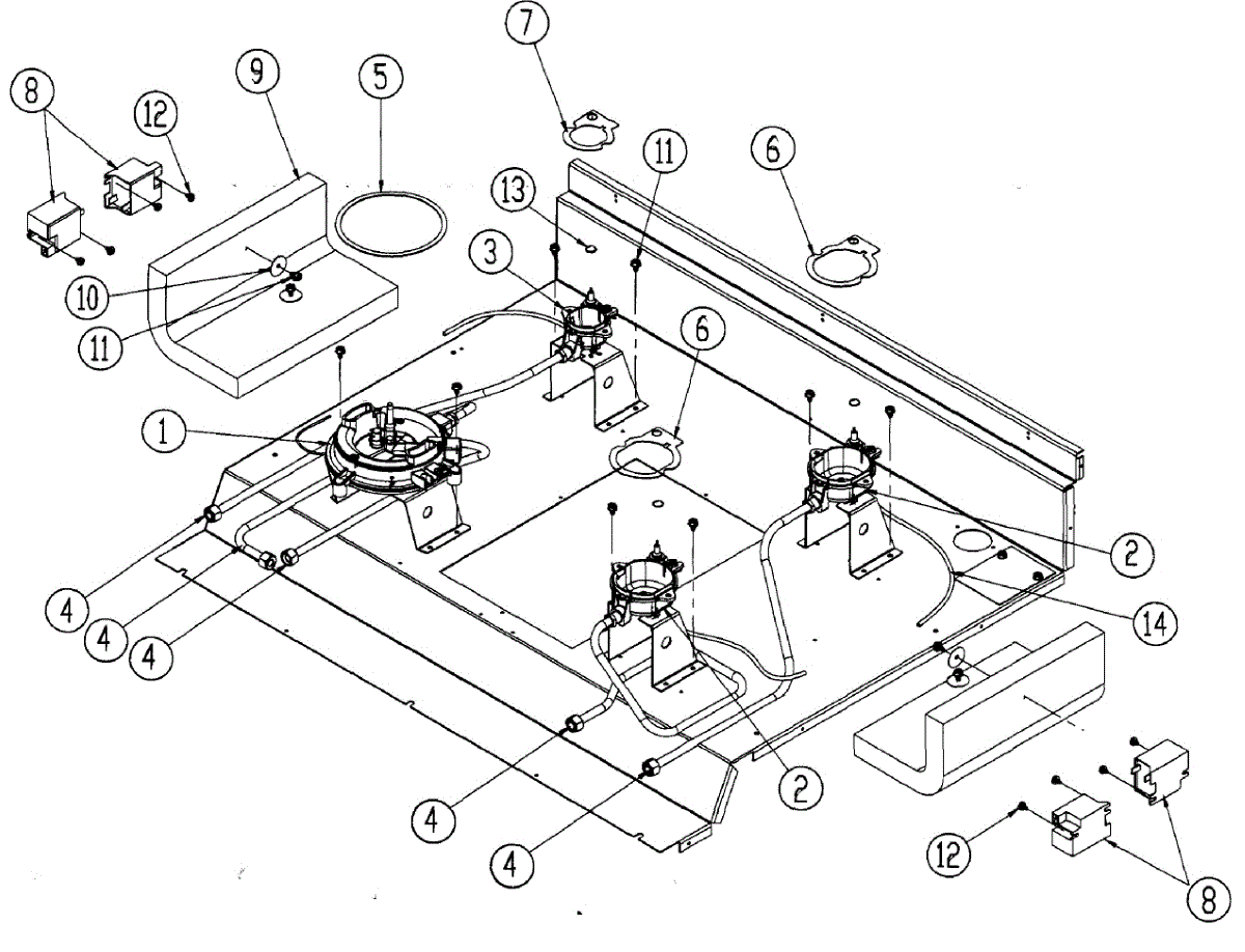 Seals dual burner assembly to cooktop surface. Replace when worn or missing to contain spills, maintain proper flame, and protect from heat and moisture.