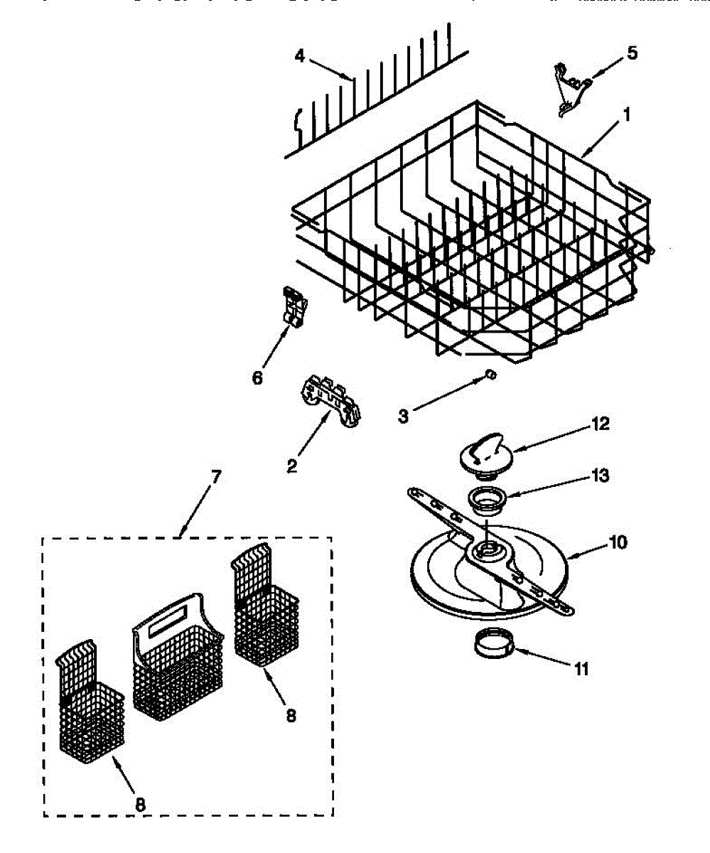 Replacement silverware basket for dishwashers. Holds utensils securely during wash cycles. Replace if cracked, broken, or has holes causing items to fall.