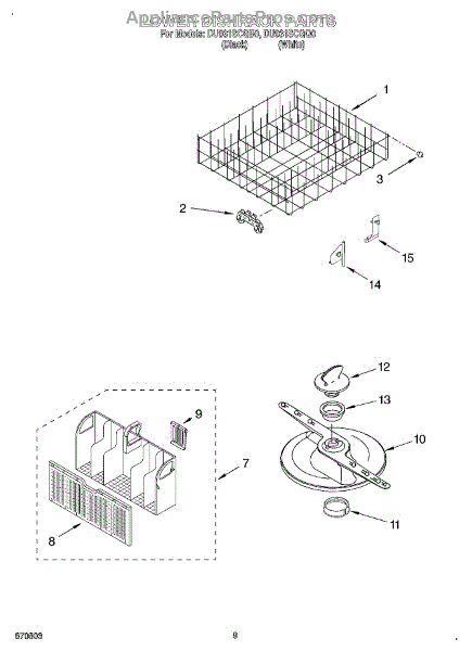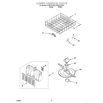Lower dishrack assembly for dishwashers. Holds dishes, pots, and pans in the bottom section. Replace when rusted, cracked, or coating is worn or peeling.
