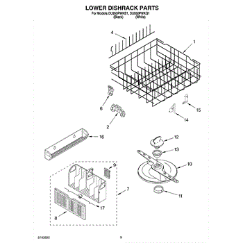 Parts for Whirlpool DU950PWKB1: 06 - Lower Dishrack Parts