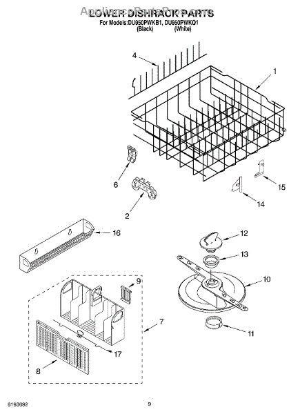 Parts for Whirlpool DU950PWKQ1: 06 - Lower Dishrack Parts