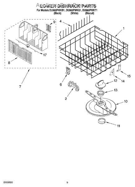 Parts for Whirlpool DU960PWKQ1: 06 - Lower Dishrack Parts