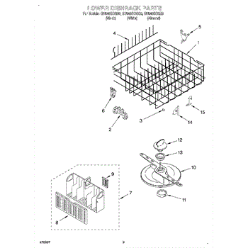 The Lower Dishwasher Rack Assembly is an OEM part for Whirlpool dishwashers. This part holds and organizes dishes, pots, and pans in the lower section of the dishwasher, ensuring they are properly positioned for effective cleaning.