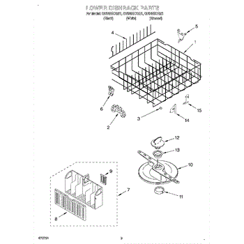 The Lower Dishwasher Rack Assembly is an OEM part for Whirlpool dishwashers. This part holds and organizes dishes, pots, and pans in the lower section of the dishwasher, ensuring they are properly positioned for effective cleaning.