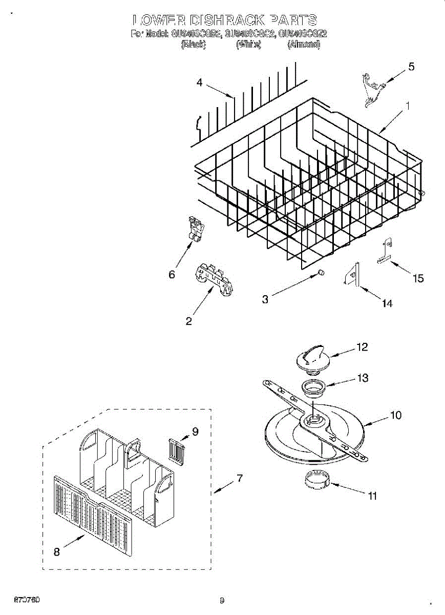 Lower dishrack assembly for dishwashers. Holds dishes, pots, and pans in the bottom section. Replace when rusted, cracked, or coating is worn or peeling.