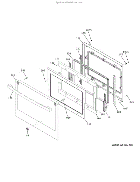Oven door window pack assembly includes glass pane and frame for viewing food while cooking. Replace if cracked, shattered, or broken from heat damage.