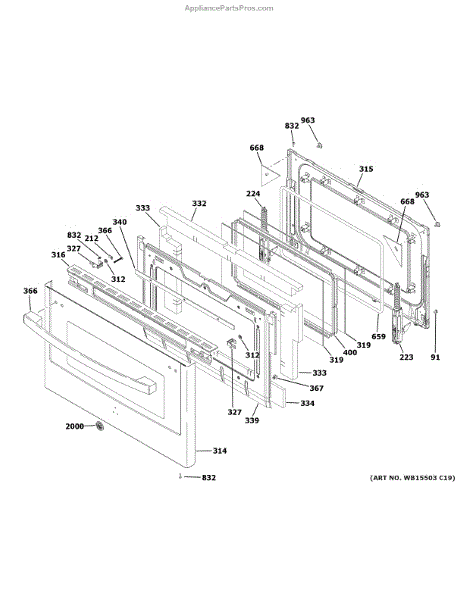 The GE Glass and Panel Door Assembly is an OEM component specifically designed for GE wall oven models. It consists of tempered glass surrounded by an outer steel panel door. Causes of a bad door assembly can include normal wear and tears and developing hairline fractures in the glass over time from repeated heating and cooling cycles. Accidental drops or impacts during cleaning could crack or compromise the integrity of the materials. Symptoms of failure include: