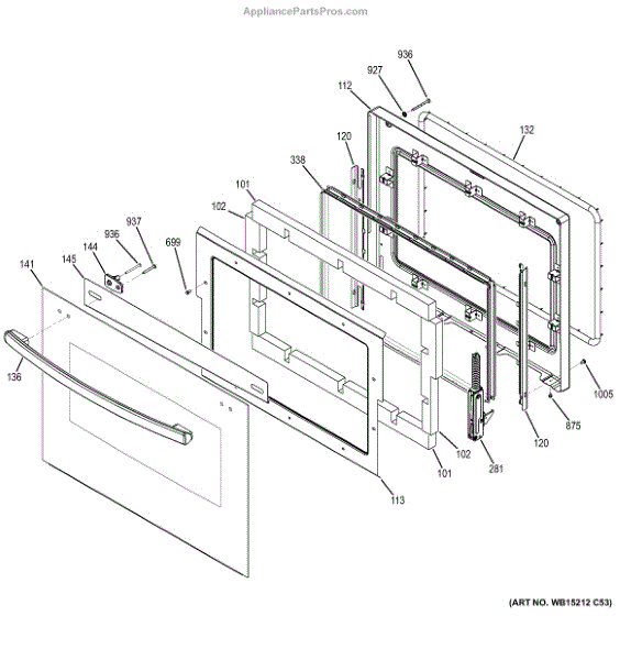 The Window Pack Assembly is an OEM part for GE ovens. This component includes the oven door window and its associated parts, providing visibility into the oven cavity during cooking. It helps retain heat within the oven while allowing users to monitor the cooking process without opening the door.