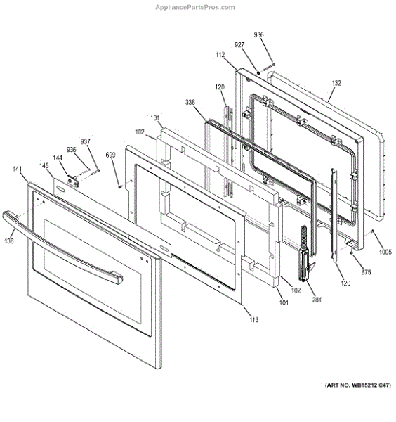 The Window Pack Assembly is an OEM part for GE ovens. This component includes the oven door window and its associated parts, providing visibility into the oven cavity during cooking. It helps retain heat within the oven while allowing users to monitor the cooking process without opening the door.