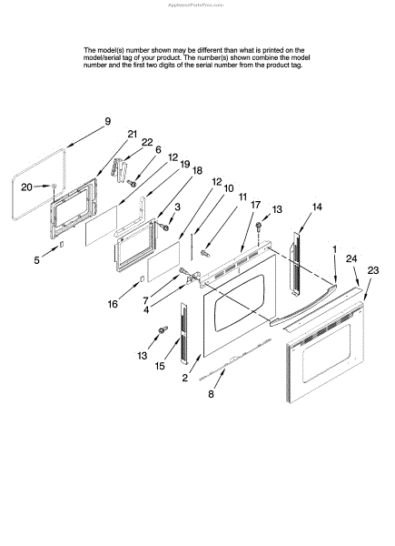 Decorative door trim for gas range and oven models. Replaces cracked, broken, or discolored trim pieces. Installs on the outer door edge for a finished look.