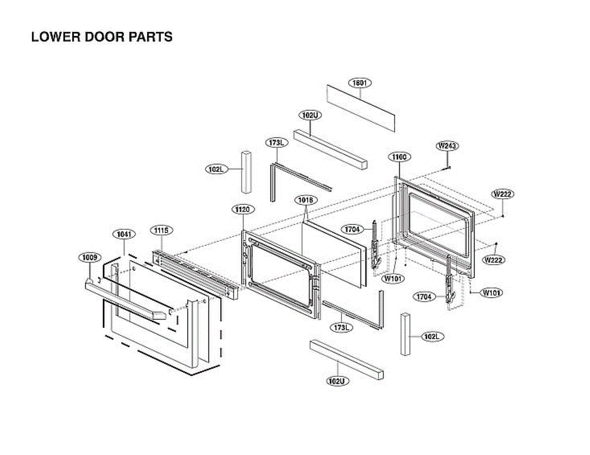 Factory service parts assembly for electric and gas ranges. Replaces worn, damaged, or missing multi-component grouping. Restores original configuration.
