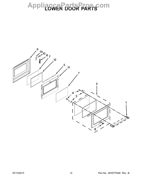 Replace your range oven door window frame if cracked, broken, or missing. This structural component holds the glass in place on the oven door assembly.