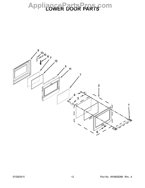 Replace your range oven door window frame if cracked, broken, or missing. This structural component holds the glass in place on the oven door assembly.