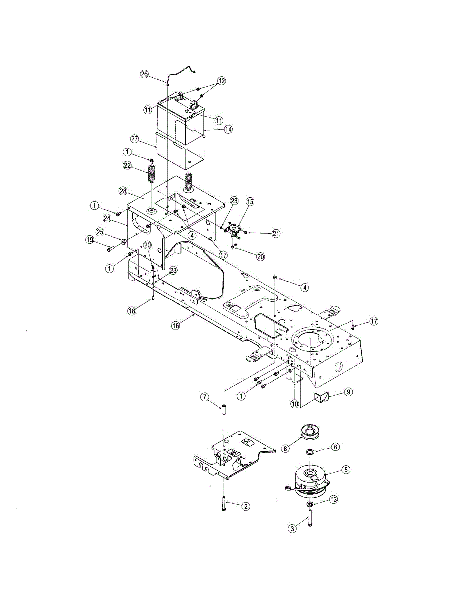 Secures the battery in your lawn tractor or riding mower. Replace if cracked, broken, or missing to prevent battery movement and secure mounting.