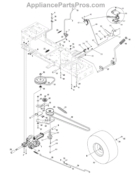 This is a variable speed pulley, designed as a genuine replacement part for use in select lawn tractors and riding mowers. The variable speed drive pulley is designed to control the drive belt, in combination with the throttle and choke, to help control the engine speed and provide the right level of movement during the mowing process. The pulley is subject to repetitive motion and constant stress, which can cause it to wear. It can become bent or damage from impact, as well. A damaged or broken pulley will cause the engine to malfunction or not work at all, rendering the tractor useless until it is replaced. Using a genuine OEM replacement like this model is essential. This specific drive pulley fits select models from Craftsman, Cub Cadet, Troy-Bilt, and Murray. It is sold as an individual unit. Be sure to disconnect the spark plug before working on the engine. Allow the engine to cool completely and wear gloves for safety. Several tools will be required for this job, including flathead and Phillips screwdrivers as well as a socket or wrench set.