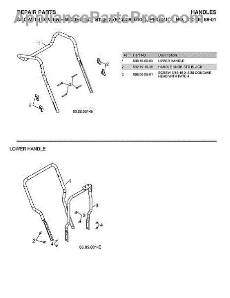 Parts for Husqvarna ST227-970528702: Lower Handle Parts