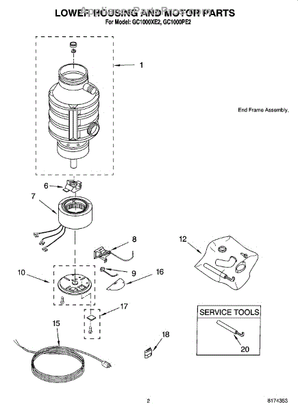 Parts for Whirlpool GC1000XE2: 02 - Lower Housing And Motor Parts