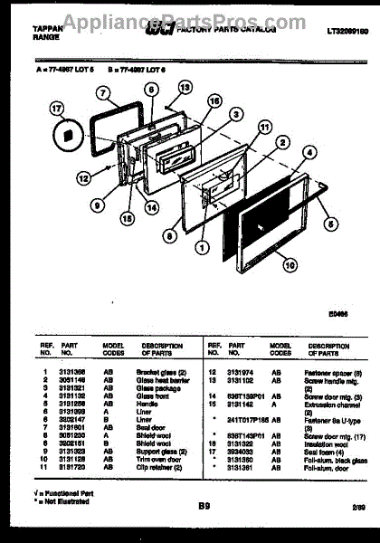 Parts for Frigidaire 77-4987-00-06: 03 - Lower Oven Door Parts