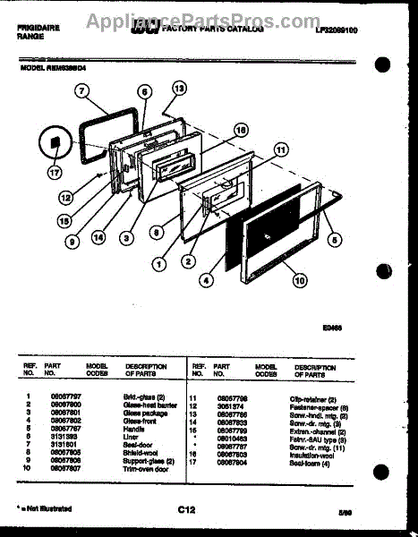 Parts for Frigidaire REM638BDL4: 04 - Lower Oven Door Parts