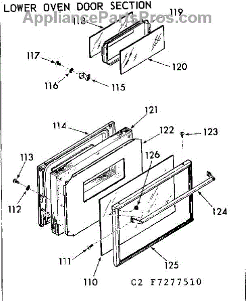 Parts for Kenmore 103.7277510 (1037277510, 103 7277510): Lower Oven Door Section Parts