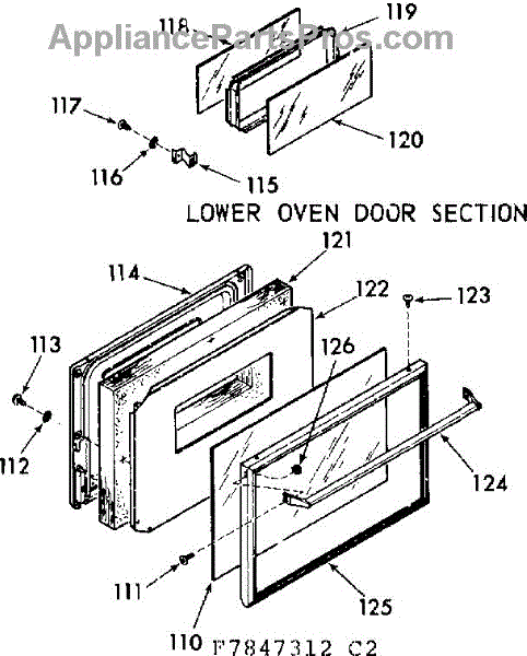Parts for Kenmore 103.7847342 (1037847342, 103 7847342): Lower Oven Door Section Parts