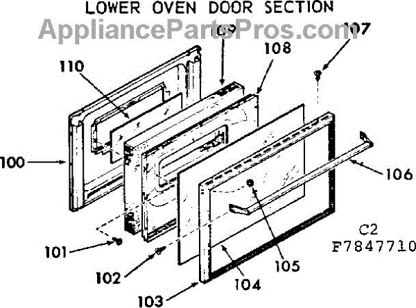 Parts for Kenmore 103.7847710 (1037847710, 103 7847710): Lower Oven Door Section Parts