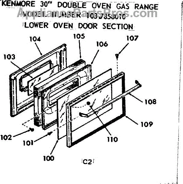 Parts for Kenmore 103.7858010 (1037858010, 103 7858010): Lower Oven Door Parts