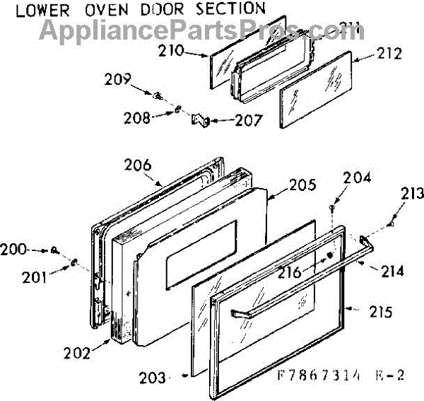 Parts for Kenmore 103.7867364 (1037867364, 103 7867364): Lower Oven Door Section Parts