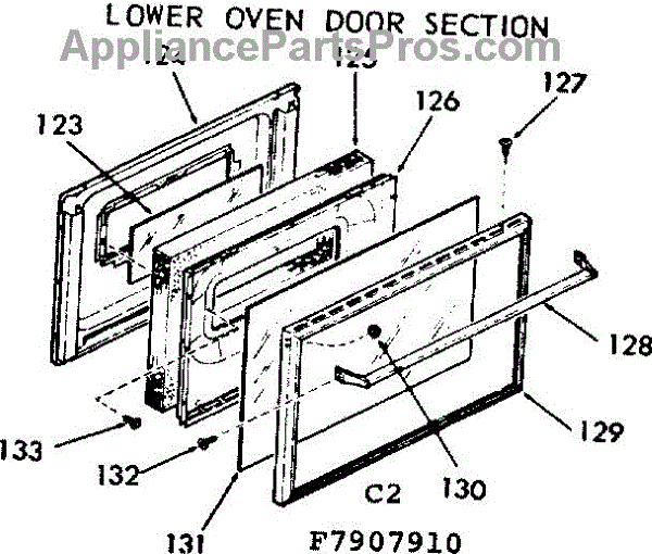 Parts for Kenmore 103.7907910 (1037907910, 103 7907910): Lower Oven Door Section Parts