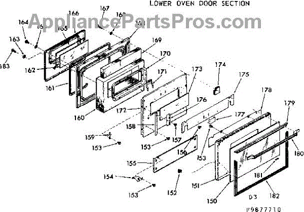 Parts for Kenmore 103.9877710 (1039877710, 103 9877710): Lower Oven Door Section Parts