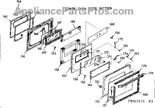 Parts for Kenmore 103.9887520 (1039887520, 103 9887520): Lower Oven Door Section Parts