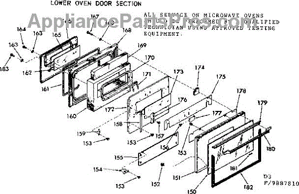 Parts for Kenmore 103.9887810 (1039887810, 103 9887810): Lower Oven Door Section Parts