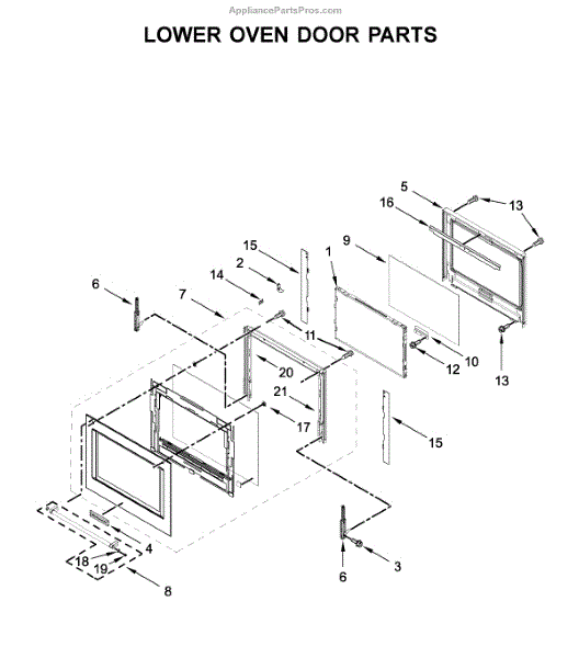 This glass bracket secures the oven door glass to the door assembly, keeping the glass stable during normal use and helping maintain a proper seal. Replaces a worn or broken bracket to restore door stability and alignment. What it does: