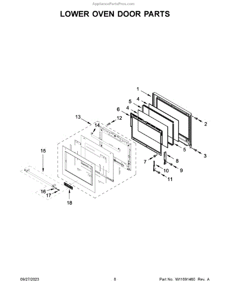 The Glass Door is an OEM part for Whirlpool ovens. This component serves as the outer layer of the oven door, providing visibility into the oven while maintaining the internal temperature. It is made of heat-resistant glass, ensuring durability and safety during cooking and baking processes.