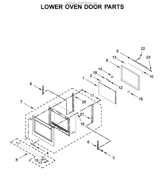 This genuine replacement part is a glass door for ovens. The glass door is the front opening door that allows access to the interior of the oven.To replace the door, start by opening the damaged glass door to the fully flat open position. Then locate the hinges of the door. Rotate the door latch to fully on both sides with a flat head screwdriver. Lift the door up to a 45-degree angle. Once it's reached that point, push a little bit further and the hinge will come out of the base of the stove; use both hands to lift the door off. Slide the new door back on the hinges, and secure the door latch to lock the new door in place.This glass oven door is a genuine OEM part and is compatible with Whirlpool brands include Whirlpool, Maytag, KitchenAid, Jenn-Air, Amana, Magic Chef, Admiral, Norge, Roper, and Sears/Kenmore brand appliances.