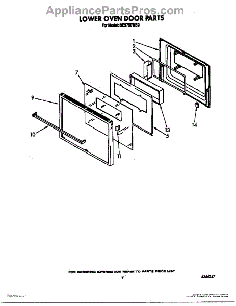 Parts for Roper BES750WB0: 07 - Lower Oven Door Parts